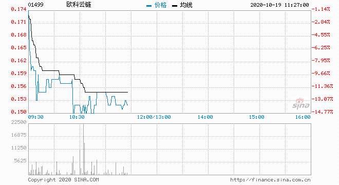 歐科云鏈續(xù)跌14% 現(xiàn)報0.15港元