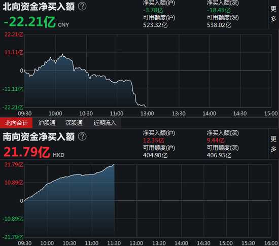 午評(píng):北向資金凈流出22.21億元 滬股通凈流出3.78億元
