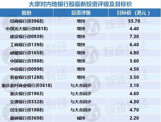 大摩:內(nèi)銀股最新投資評級 招行及平安銀行等仍是首選