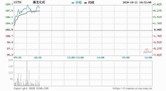 現(xiàn)漲6.63%,報(bào)價(jià)109.3港元,成交額1315.45萬(wàn)。