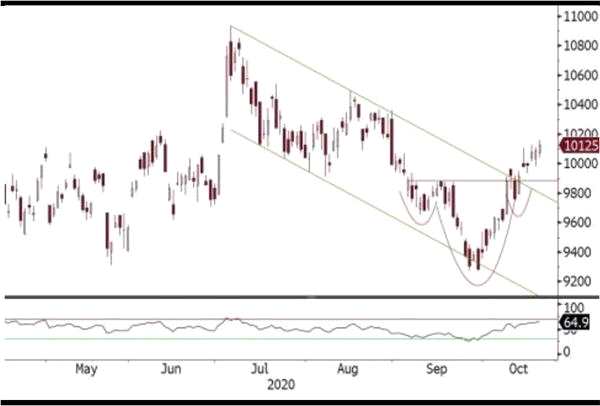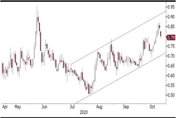 美股急挫但未見恐慌。港股昨天假期休市,假期前連升六天,累漲760點(diǎn)或3.15%。上周五恒指升133點(diǎn)或0.54%,舊經(jīng)濟(jì)股領(lǐng)漲,匯豐(5 HK)升3.2%,中國平安(2318 HK)升2.3%,“三桶油” 漲6%。昨夜美股顯著下挫,美國的新冠肺炎單日確診數(shù)字創(chuàng)新高,加上總統(tǒng)大選前料難達(dá)成新一輪紓困方案,道指曾瀉965點(diǎn),收市跌650點(diǎn)或2.29%,科技股跌幅較小,納指跌1.64%。市場避險(xiǎn)情緒上升,但未見恐慌, “恐慌指數(shù)” VIX仍低于6月及9月美股回調(diào)時(shí)之水平,而美國十年期國債孳息仍遠(yuǎn)高于8月初低位,反映資金未有大量涌向避險(xiǎn)資產(chǎn)。