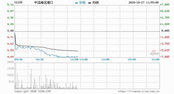 港口航運股普跌,中遠海運港口(1199.HK)跌逾6%,中遠海能(600026,股吧)跌逾4%,中國外運、日照港(600017,股吧)裕廊跌逾3%。