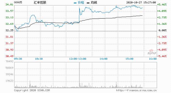 匯豐控股一度從最低的27.5港元漲至34港元,最大漲幅達(dá)23.64%。