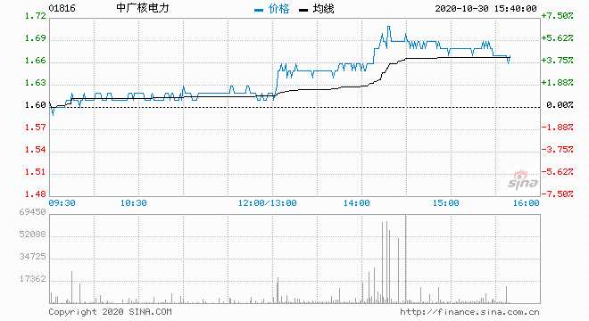 摘要: 中廣核電力(01816)績后獲匯豐環(huán)球上調評級及目標價,午后漲幅快速擴大,突破多條均線,截至14時51分,漲5.63%,報價1.69港元,成交額1.2億。