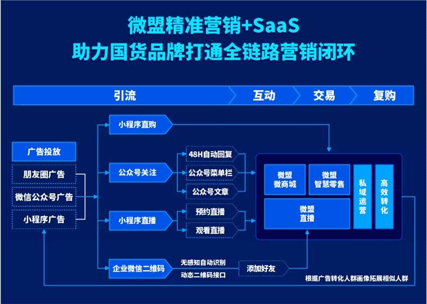 但是,在數(shù)字經(jīng)濟(jì)日新月異的快速發(fā)展勢頭下,大多數(shù)國貨品牌企業(yè)在全域數(shù)字化的運營上仍凸顯落后和能力不足。微盟集團(tuán)智慧商業(yè)事業(yè)群大客負(fù)責(zé)人周夢夢表示,利用小程序是反復(fù)觸達(dá)用戶的最好方式,也是國貨品牌變現(xiàn)的最好方式,而掌握了微信生態(tài)全觸點配置,將實現(xiàn)全鏈路的私域互通運營。
