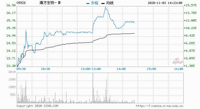 康方生物午后漲幅擴(kuò)大至12% 大和首次覆蓋目標(biāo)價(jià)45港元