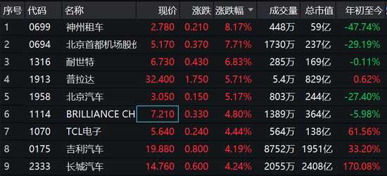 汽車股持續(xù)爆發(fā):神州租車漲超8% 華晨中國漲近5%