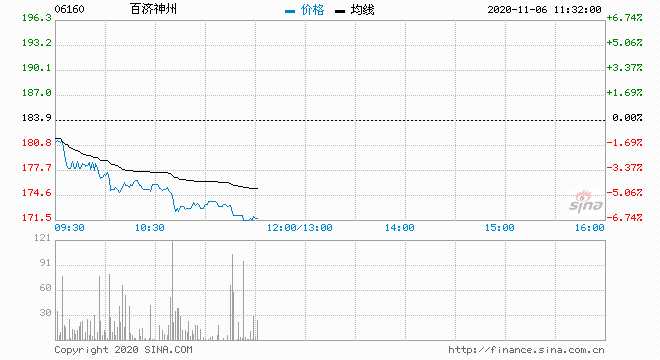 截至發(fā)稿,百濟神州跌5.71%,報173.4港元,成交額2728.36萬港元。