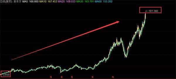2006年在美股上市的新東方,上市至今股價累計最高漲幅近50倍,總市值290億美元。