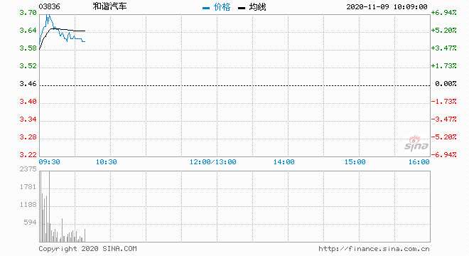 摘要: 汽車經(jīng)銷商集體上揚(yáng),截至發(fā)稿,和諧汽車(03836)漲6.07%,報(bào)3.67港元;美東汽車(01268)漲1.38%,報(bào)33港元;中升控股(00881)漲0.93%,報(bào)59.5港元。