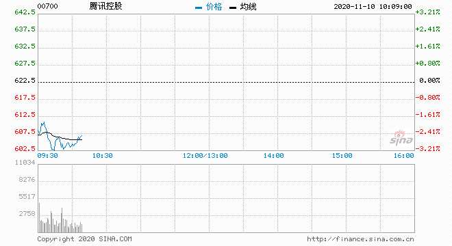 該公司股價(jià)開盤報(bào)606港元,跌2.65%,成交量215.14萬,成交額13.12億港元。
