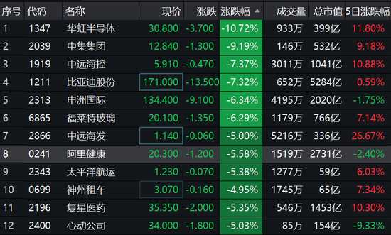 昨日強(qiáng)勢(shì)股集體回落:華虹半導(dǎo)體跌10% 比亞迪跌超7%