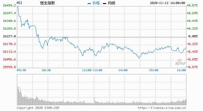 摘要: 恒指早盤漲182.36點(diǎn)或0.7%,報(bào)26409.34點(diǎn)。截至收盤,恒生指數(shù)跌57.6點(diǎn)或0.22%,報(bào)26169.38點(diǎn),全日成交額達(dá)1671.35億。
