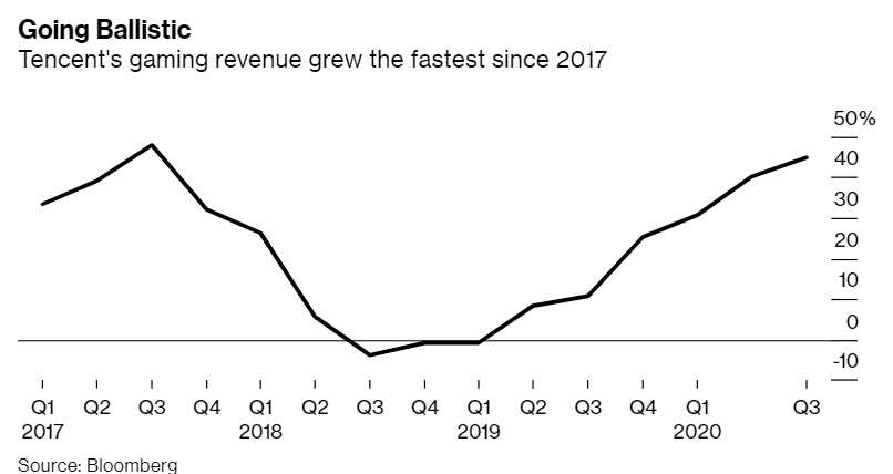 期內(nèi),騰訊網(wǎng)絡(luò)游戲收入增長45%至414.22億元,增長主要由包括《和平精英》及《王者榮耀》在內(nèi)的國內(nèi)及海外智能手機游戲的收入增長所推動。