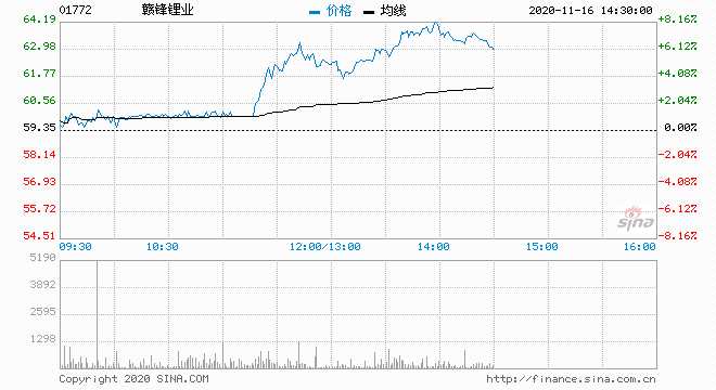 贛鋒鋰業(yè)漲超7% 股價(jià)再創(chuàng)歷史新高