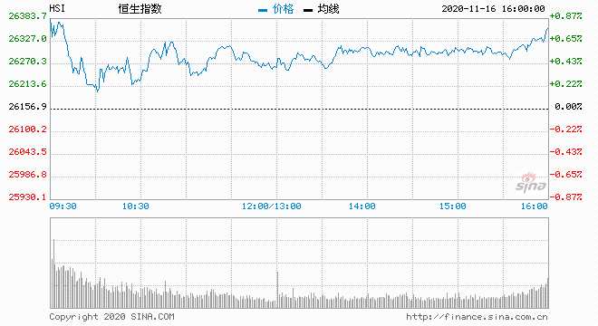 11月16日消息,美股周五收高,標普500指數(shù)創(chuàng)歷史最高收盤紀錄。摩根大通稱樂觀疫苗前景將改變市場格局,建議提高風險敞口。截止收盤,恒生指數(shù)漲0.86%,報26381.67點;國企指數(shù)漲0.32%,紅籌指數(shù)跌0.41%。