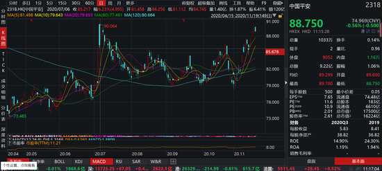 1月8日至4月17日,公司買入中國平安2215.65萬股,涉資17.42億港元。截至9月30日,公司浮盈0.2億港元;截至昨日晚間收盤,公司浮盈2.25億港元。(中期浮虧0.43億港元)