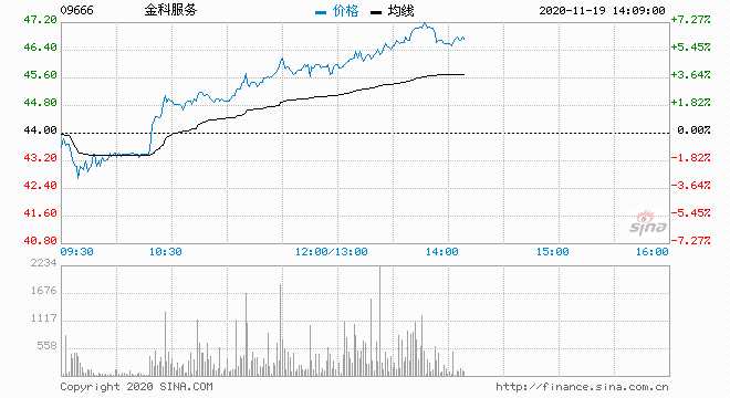 金科服務(wù)午后漲超6%,截至發(fā)稿,漲6.59%,報(bào)46.9港元,成交額2.77億港元。