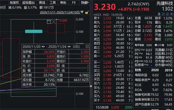 11月20日,港股先健科技開市前該股現(xiàn)6宗大手成交,每股作價2.3港元,共涉及4.62億股,共涉資10.64億元。
