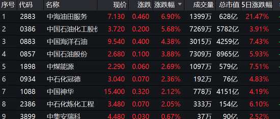 11月25日消息,市場關(guān)注產(chǎn)油國會議,國際油價急升,中海油田服務(wù)大漲6.9%,中石化漲5.7%,中海油漲超4%,中石油漲4%。