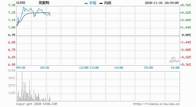 周黑鴨反彈逾5% 獲瑞信上調(diào)其目標(biāo)價(jià)24%至8.7港元