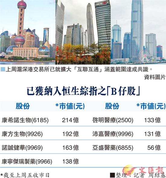 現(xiàn)時(shí)在主板上市、并未有盈利的生物科技公司,在編號(hào)后面會(huì)有一個(gè)“B”以資識(shí)別,市場俗稱“B類股”,未來將可進(jìn)入互聯(lián)互通的范圍內(nèi)。滬深港3家交易所上周就此達(dá)成共識(shí),同意屬恒生綜指成份股、或在內(nèi)地有發(fā)行A股的“B類股”,將可納入“港股通”范圍,預(yù)計(jì)1個(gè)月后生效。