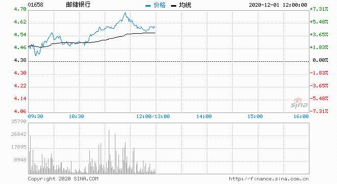 內(nèi)銀股再度走強(qiáng) 郵儲銀行上漲5%