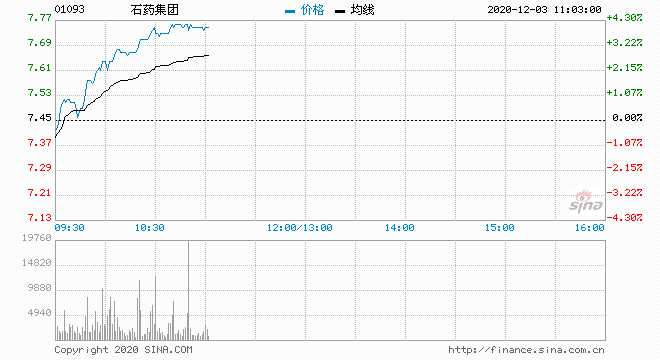 石藥集團(tuán)漲超4% 現(xiàn)報(bào)7.75港元