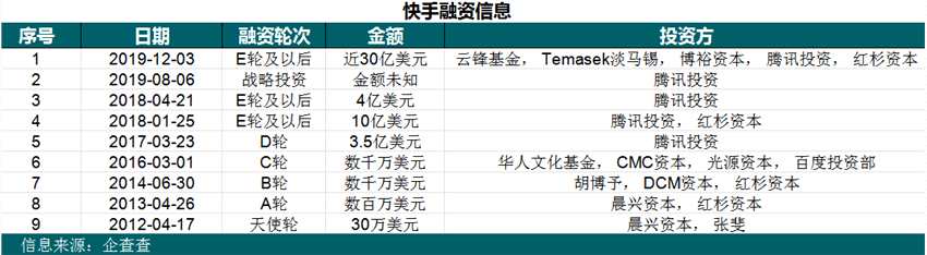 (北京快手融資信息)