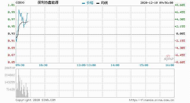 截至發(fā)稿,保利協(xié)鑫能源漲6.45%,報0.99港元,成交額1.65億港元。