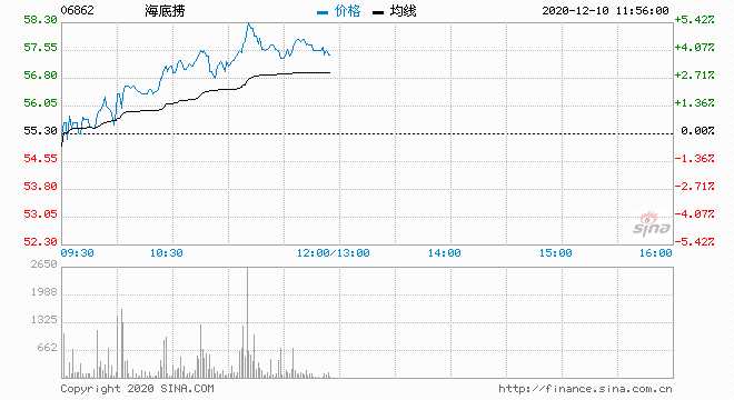 海底撈漲超5% 匯豐研究上調(diào)其目標價27.5%至38.5港元