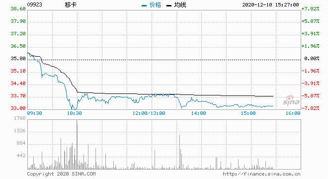 摘要: 移卡(9923.HK)持續(xù)走弱,續(xù)跌7.26%,5日累跌20%,報33.2港元創(chuàng)近5個月新低,暫成交1.2億港元,總市值141.5億港元。