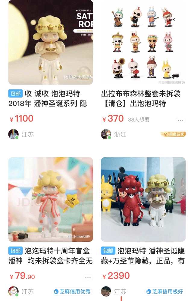 一家泡泡瑪特店,已經(jīng)不能滿足那些因為想集齊全套而不停購買盲盒的消費者,二手市場上同樣炒得火熱。