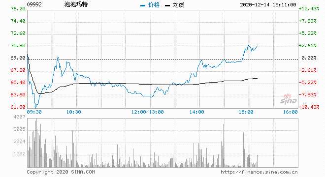 泡泡瑪特午后轉(zhuǎn)漲2%市值逼近千億 此前一度跌超10%