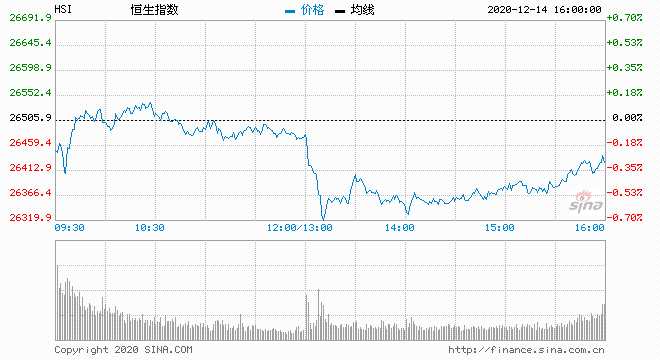 港股上午收跌25點,午后再呈弱勢,并擴大跌幅,恒指低見26318,最多跌187點,續(xù)在低位橫行至收市。港股上星期累計全周跌330點,連續(xù)兩個星期下跌。高低幅度維持在26000內(nèi)上落。新舊經(jīng)濟股份原地踏步,僅繼續(xù)炒作新股。明年開始,疫苗已經(jīng)可陸續(xù)分派,以供市民注射,寄望疫情能早日終結(jié),而整體經(jīng)濟亦可以回復(fù)增長。