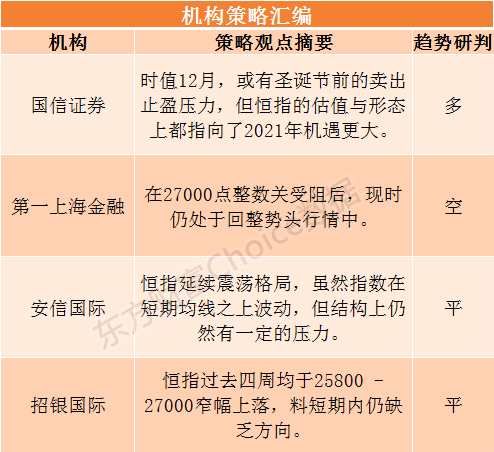 招銀國際表示,恒指過去四周均于25800-27000窄幅上落,料短期內(nèi)仍缺乏方向,但在疫苗好消息頻傳的支持下,相信稍后向上突破的機會較高,受惠經(jīng)濟復(fù)蘇的周期性股份有望跑贏。