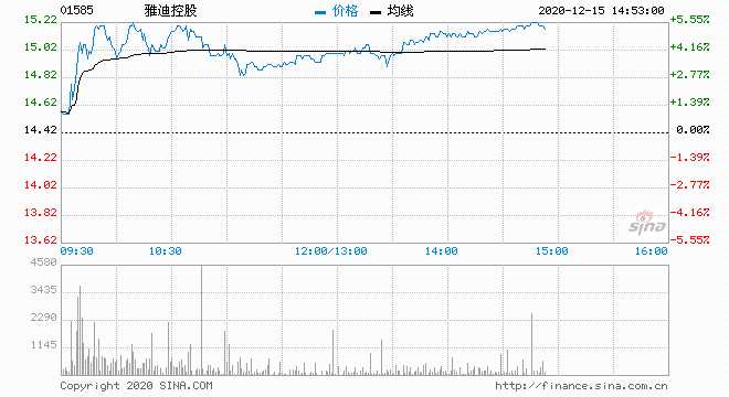 雅迪控股(01585)現(xiàn)漲超5%,盤中高見15.24港元,距歷史前高15.68港元僅一步之遙。截至發(fā)稿,漲5.13%,報15.16港元,成交額1.35億港元。