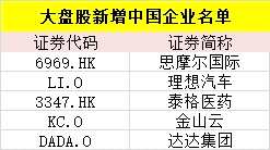 其中,大盤股新納入5家中國(guó)公司,包括港股的思摩爾國(guó)際、泰格醫(yī)藥,還有美股的理想汽車、金山云、達(dá)達(dá)集團(tuán)。