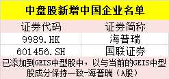 中盤股則新增了2家中國(guó)公司,包括A股的【國(guó)聯(lián)證券(601456)、股吧】;港股的海普瑞,與當(dāng)前GEIS中盤成分股海普瑞(A股)保持一致。