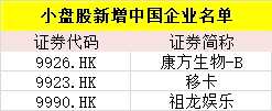小盤股則新增3家中國(guó)公司,包括港股的康方生物-B、移卡和祖龍娛樂(lè)。