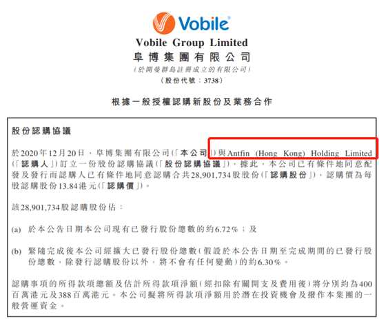 阜博集團(tuán)折讓7.49%配售2890萬股 螞蟻將將持股公司6.3%
