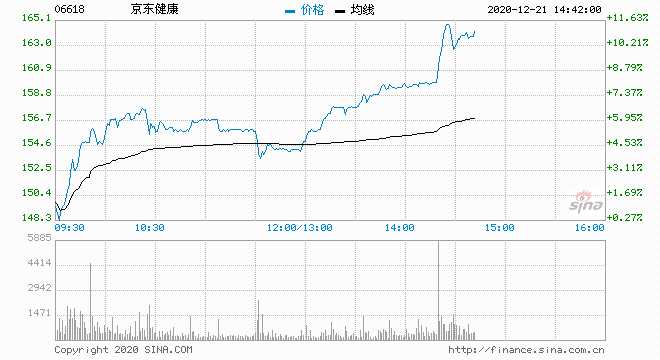 摘要: 12月21日消息,京東健康午后漲幅擴(kuò)大至8.18%,股價(jià)站上160港元,市值突破5000億港元,創(chuàng)新高。