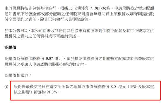 該集團(tuán)同時(shí)建議每1股合并股份供9股,每股供股價(jià)0.07港元,籌集最多約2.13億港元,用于償還貸款。以該股昨日收?qǐng)?bào)0.037港元,假設(shè)股份已合并,即供股價(jià)折讓約90.54%。