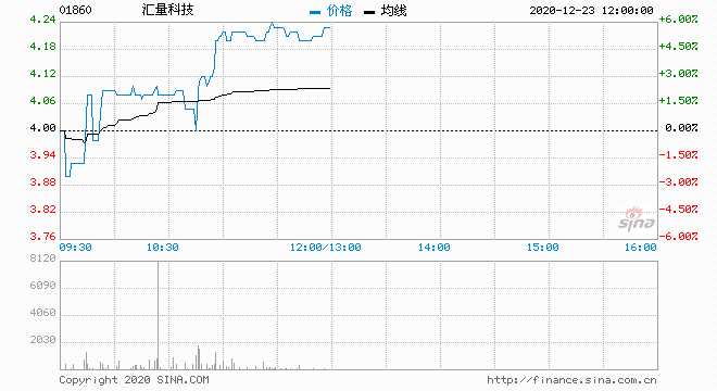 匯量科技漲超5% 現(xiàn)報(bào)4.23港元