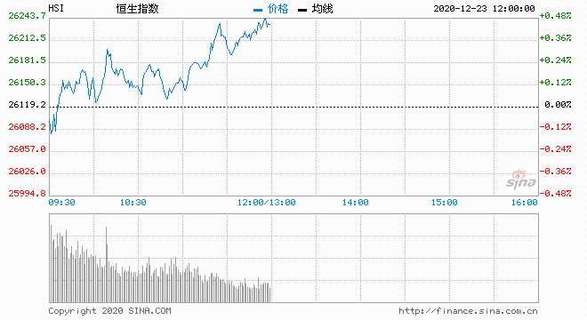 12月23日消息,美股周二收盤漲跌不一,標(biāo)普500指數(shù)連續(xù)第三日收跌。美國(guó)國(guó)會(huì)通過(guò)市場(chǎng)等待已久的聯(lián)邦支出和刺激法案。投資者仍在評(píng)估英國(guó)變異新冠病毒對(duì)全球經(jīng)濟(jì)復(fù)蘇的影響,美疾控中心估計(jì)該病毒可能已傳入美國(guó)。今日開(kāi)盤,港股恒指低開(kāi)0.14%%,隨后翻紅。截止午間收盤,恒生指數(shù)漲0.44%,報(bào)26235.27點(diǎn);國(guó)企指數(shù)漲0.71%,紅籌指數(shù)漲0.86%。