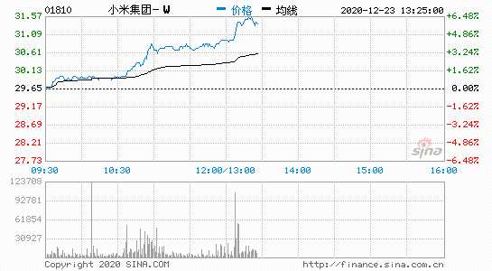 新浪科技訊 12月23日午間消息,港股小米集團(tuán)(01810.HK)午后漲幅擴(kuò)大至6.239%,報(bào)31.5港元,續(xù)刷紀(jì)錄高位。市值破7000億港元,達(dá)7920.39億。