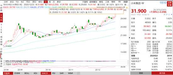 12月23日消息,小米股價近期不斷走高,今年股價翻了2倍,截至收盤,小米漲7.59%,報價31.9港元,市值8021億港元,折合1035億美元,首次躋身千億美元行列。