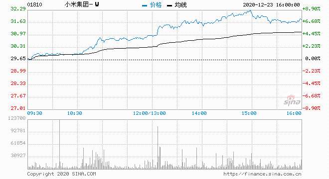 摘要: 12月23日消息,小米股價近期不斷走高,今年股價翻了2倍,截至收盤,小米漲7.59%,報價31.9港元,市值8021億港元,折合1035億美元,首次躋身千億美元行列。