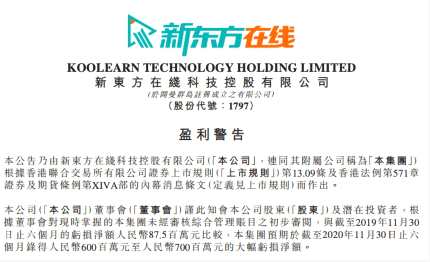 新東方在線預(yù)計2020年上半年虧損超6億元