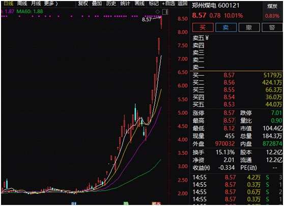 鄭州煤電(600121,股吧)也是類似情形,近日連續(xù)8個交易日上漲, 區(qū)間累計(jì)漲幅高達(dá)106.01%。